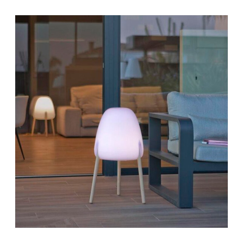 Con forma de cohete y fabricada en polietileno blanco resistente, esta lámpara decorativa destaca por su autonomía y versatilidad. Funciona mediante carga solar durante el día o también puede recargarse por USB. Su sistema de iluminación LED RGB + blanco se controla con mando a distancia, lo que permite personalizar el ambiente con distintos colores y efectos. Una opción práctica, original y sostenible para tus espacios.