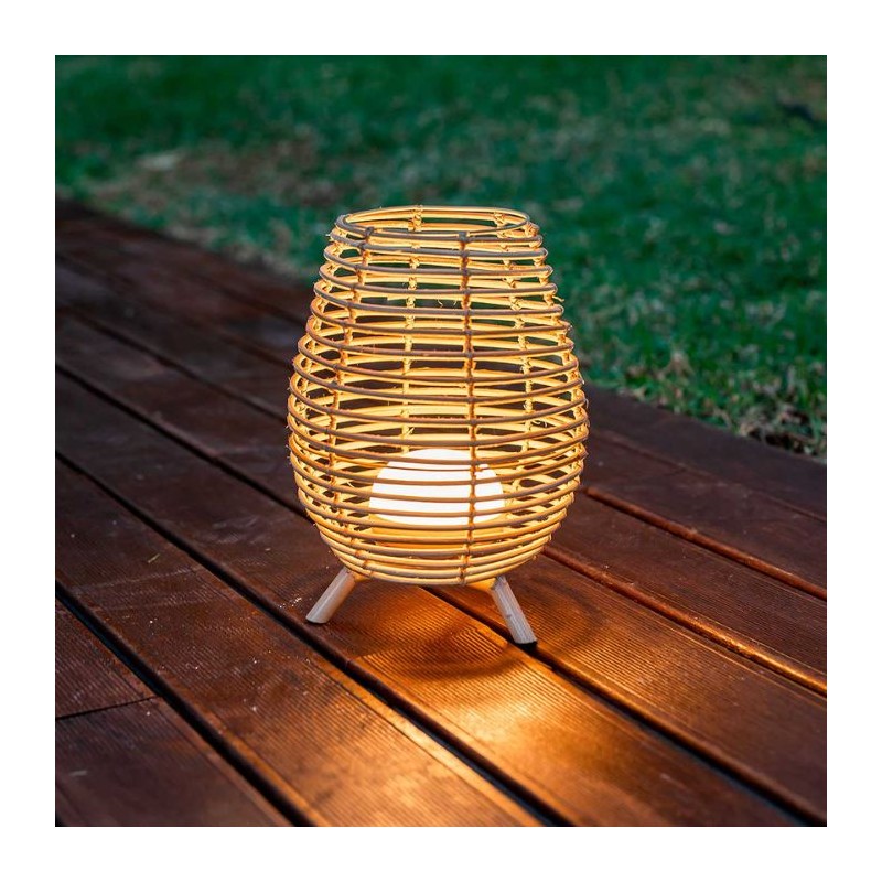 Lámpara portátil con batería recargable y luz LED integrada, perfecta para iluminar espacios exteriores e interiores sin cables.