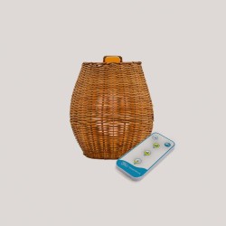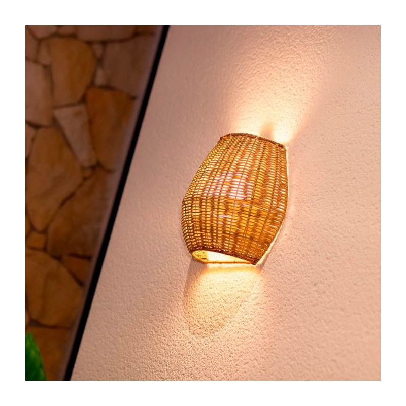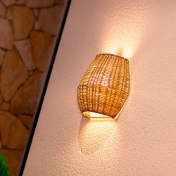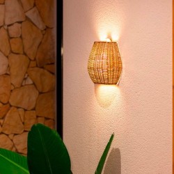Fabricada en polietileno con acabado trenzado que simula fibras naturales, la Saona Wall 25 destaca por su estética boho y su versatilidad. Se fija fácilmente a la pared y funciona con una batería recargable que puedes cargar mediante cable USB. Su luz LED blanco cálido crea una atmósfera acogedora perfecta para porches, terrazas o balcones. Además, incluye mando a distancia para encendido y control de intensidad.