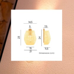 Ilumina tus paredes con estilo natural y sin cables.La lámpara Saona 25 Wall de New Garden es un aplique decorativo de pared con diseño efecto ratán que aporta calidez y ambiente a cualquier espacio exterior. Funciona con batería recargable, por lo que no necesita instalación eléctrica.