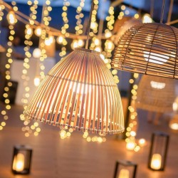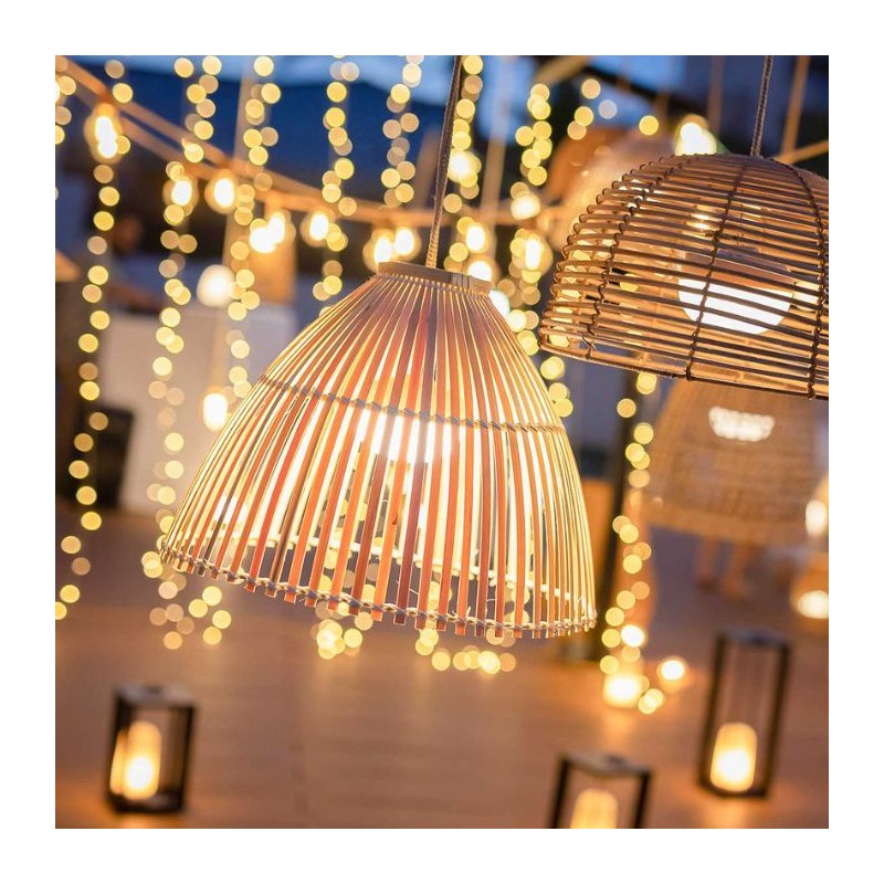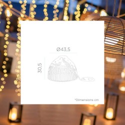 Fabricada en polietileno con acabado efecto fibra natural, la Reona Hang está pensada para colgar fácilmente en pérgolas, ramas o estructuras al aire libre. Funciona con batería recargable mediante USB y ofrece una luz LED blanco cálido ideal para ambientar cenas o reuniones en el jardín. Incluye mando a distancia para un uso cómodo y cuenta con protección IP65 para resistir a la intemperie.