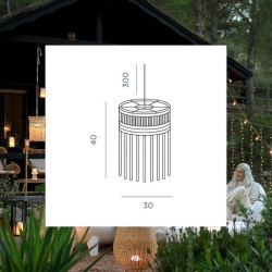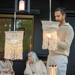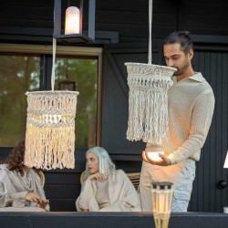 La lámpara colgante Mykonos Hang de New Garden aporta un toque distintivo y bohemio a tu espacio al aire libre. Fabricada con un tejido de algodón, esta lámpara elimina la necesidad de conexiones eléctricas, ofreciéndote la libertad de personalizar la iluminación según tus preferencias.