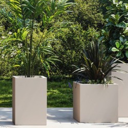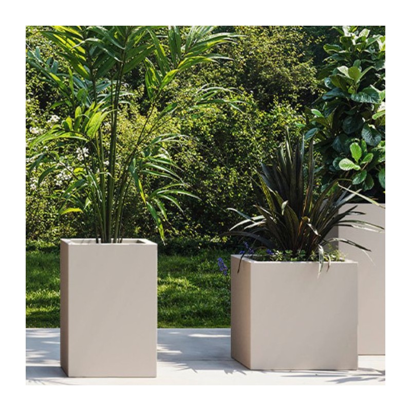 Proceso de fabricación: Modelo Rotacional. Resistente a UVI. Factor UV8 equivalente a 8.000 horas de sol en Florida. Resistente a temperaturas extremas (-60ºC a +80ºC). Resistente a impactos. Ligera. Los maceteros son fáciles de taladrar para realizar las marcas de drenaje. Reciclable 100%.