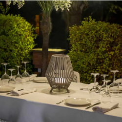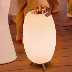 Sistema sin cable. Batería recargable. Mando a distancia. Todos los colores RGB. Iluminación LED. Tiempo de carga 6 horas. Duración 12 horas. Bombilla LED con cambio de color. Incluye mando a distancia para el cambio de color. Adaptado al ambiente exterior e interior. Con luz fría y cálida