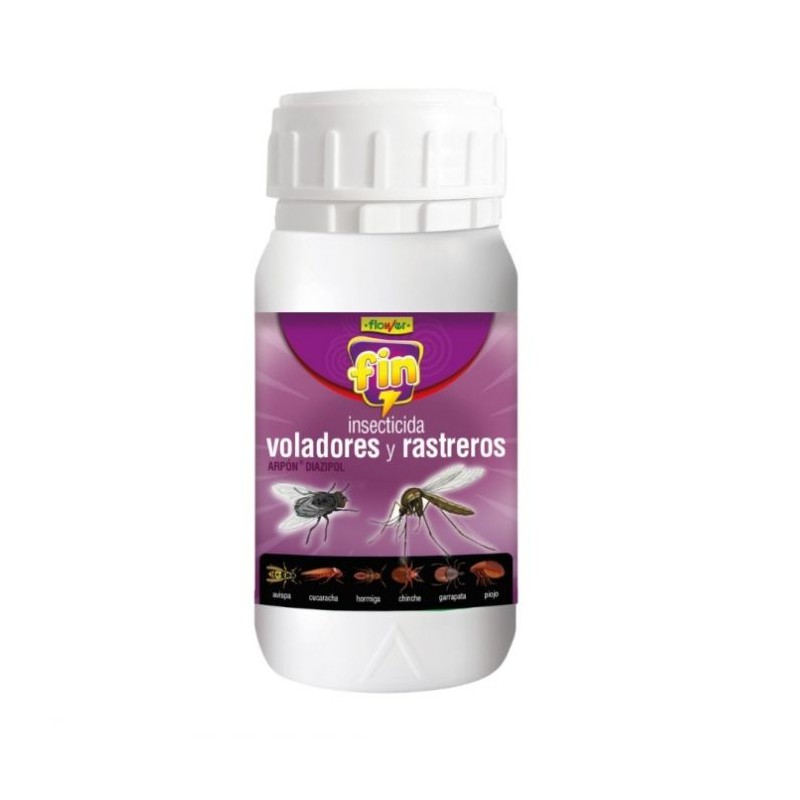 Fin Insectos Voladores y Rastreros Flower es un insecticida líquido formulado para eliminar de forma rápida y eficaz una amplia gama de insectos que invaden los espacios domésticos: moscas, mosquitos, avispas, cucarachas, hormigas, pulgas, chinches, garrapatas y piojos.