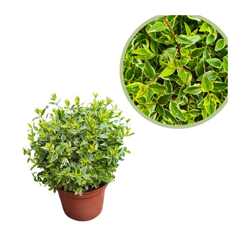 La Abelia variegata 'Radiance' es una planta de hoja perenne, perfecta para dar un toque de color y elegancia a tu jardín o terraza. Con sus hojas de tonos verdes y blancos, y sus flores blancas y fragantes, se adapta tanto a jardines de estilo moderno como clásico. Es ideal para bordes, macetas o setos ornamentales.
