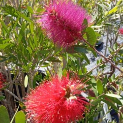 El callistemon laevis posee flores de color rojo brillante y espigas de 10-15 cm de longitud.
