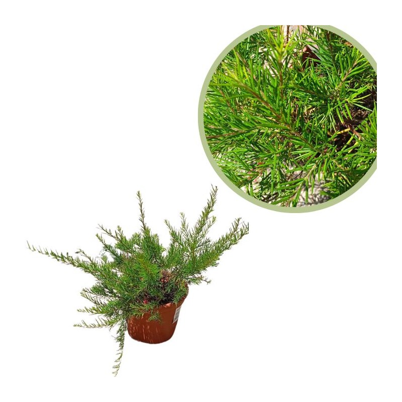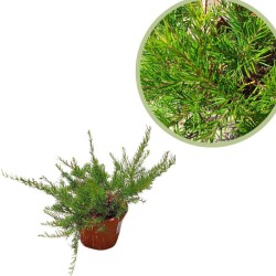 Arbusto perenne muy resistente, de hoja fina y aspecto similar al enebro. Produce abundantes flores de color rojo, rosa o amarillo según la variedad. Ideal para jardines de bajo mantenimiento y climas cálidos.