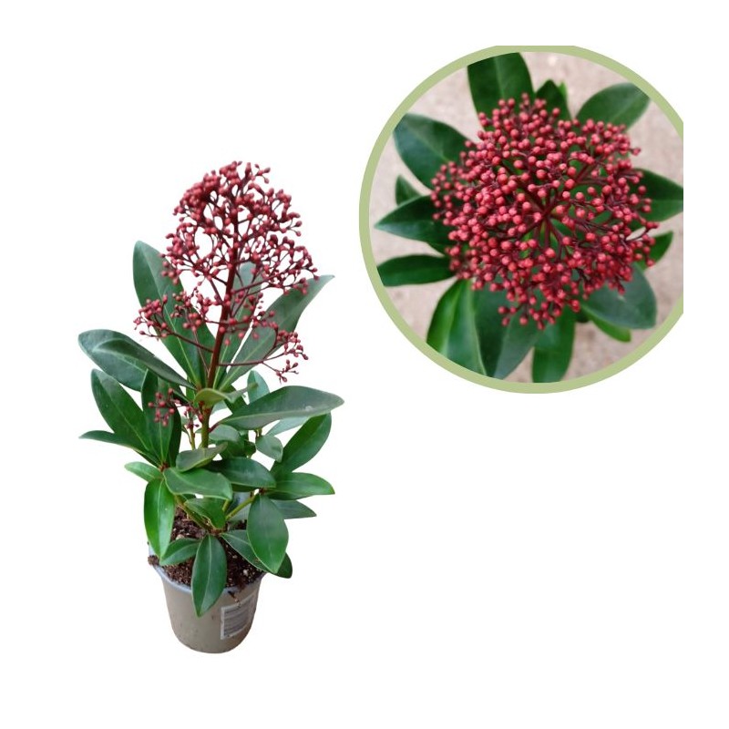 Skimmia japonica Rubella es un arbusto ornamental perenne y aromático.