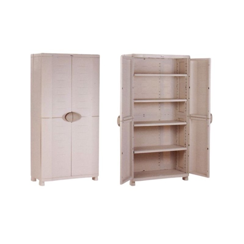 Dimensiones Generosas: Con unas medidas de 90x45x184 cm, este armario ofrece un amplio espacio de almacenamiento en sus cuatro estantes, perfectos para organizar diversos objetos, desde herramientas hasta productos de limpieza.Diseño Elegante: Su acabado en color beige-beige oscuro no solo lo hace versátil para adaptarse a cualquier decoración, sino que también aporta un toque moderno y limpio a cualquier espacio, ya sea interior o exterior.Facilidad de Montaje: Este armario está diseñado para un montaje rápido y sin complicaciones, permitiéndote armarlo en poco tiempo y empezar a organizarte de inmediato.Versatilidad de Uso: Ideal para garajes, sótanos, trasteros, o incluso para mantener el orden en oficinas y habitaciones. Su resistencia y durabilidad, gracias a su fabricación en resina plástica de alta calidad, garantizan que soportará el paso del tiempo y las condiciones más exigentes.Optimización del Espacio: Su diseño vertical maximiza el espacio, permitiéndote almacenar más en menos superficie.
