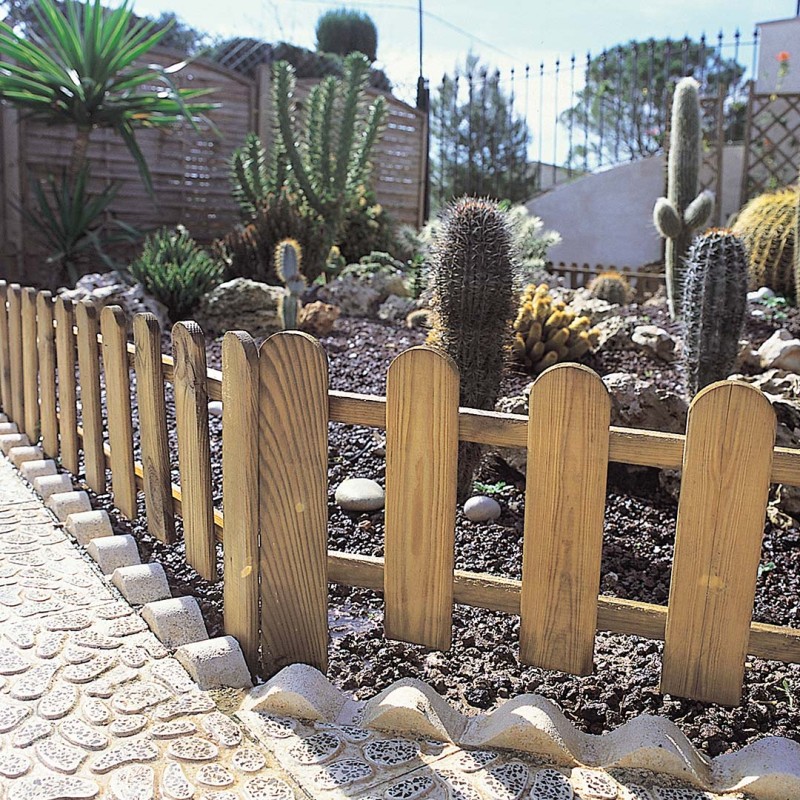 Mini valla de madera tratada con Autoclave 3, diseñada para delimitar zonas. En ambos extremos la minivalla incorpora dos puntas para facilitar el anclaje a tierra.