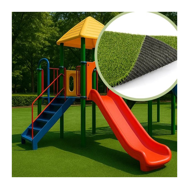 Césped artificial Multijuegos Antiestático 12 mm: ideal para zonas infantiles, parques y áreas recreativas con alto tránsito, seguro, cómodo y duradero.