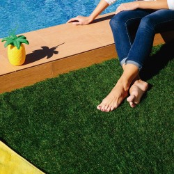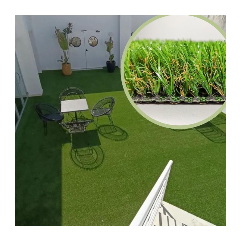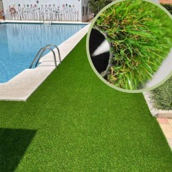 Césped artificial green Denia EVO 20 mm, de alta categoría, confeccionado con fibras de última generación que le otorgan un aspecto muy natural, de gran frondosidad y un excelente efecto memoria.