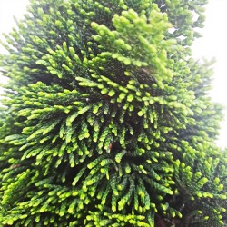 DESCRIPCIÓN: Conifera de porte compacto de color verde oscuro brillante en forma de concha aplanada, sus ramas acículas en forma de abanico le otorgan una prestancia singular, siendo de forma irregular y globosa. Crecimiento muy lento que puede alcanzar de 1-2 m de alto y anchos.