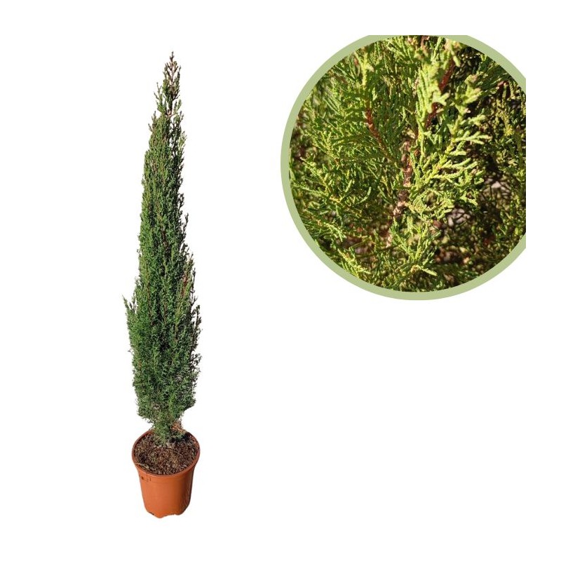 Generalidades: Cupressus sempervirens stricta, es uno de los cipreses más delgados y esbeltos, al no ser tan compacto como el tótem su crecimiento es mucho más rápido.
