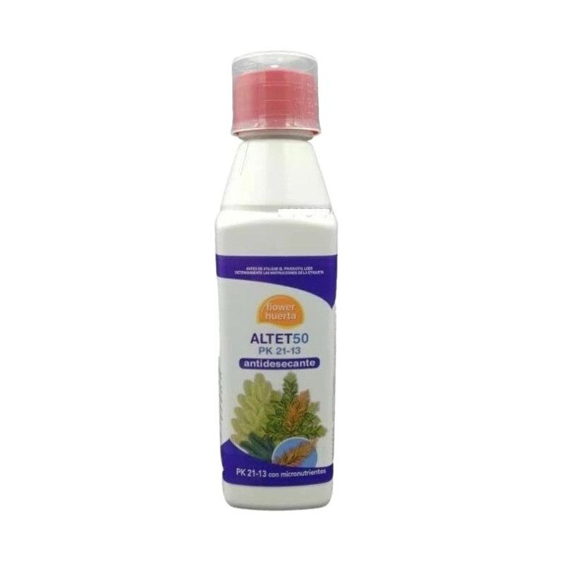 ALTET-50 ANTIDESECANTE CONÍFERAS es un abono preparado a base de fósforo y potasio procedentes de fosfonato potásico que, junto con los microelementos que incorpora (hierro, manganeso, zinc...) actúa como bioestimulante en la inducción de las defensas naturales de las plantas (fitoalexinas).