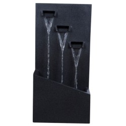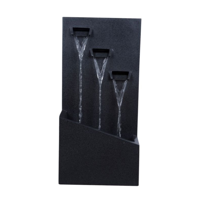 Las formas tradicionales de las fuentes inspiran esta colección que se adapta a los espacios vivos dotándoles de luminosidad y de los sonidos relajantes y armoniosos que proporciona el agua al fluir. La poliresina es una mezcla de varias resinas especialmente resina de poliéster, que al calentarse se transforman en una resina muy flexible y moldeable, que cuando se seca y enfría, se endurece formando así un material muy duradero, ligero y resistente.