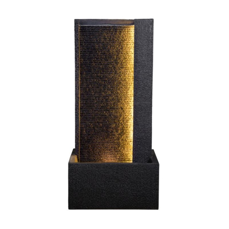 Las formas tradicionales de las fuentes inspiran esta colección que se adapta a los espacios vivos dotándoles de luminosidad y de los sonidos relajantes y armoniosos que proporciona el agua al fluir. La poliresina es una mezcla de varias resinas especialmente resina de poliéster, que al calentarse se transforman en una resina muy flexible y moldeable, que cuando se seca y enfría, se endurece formando así un material muy duradero, ligero y resistente.