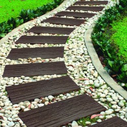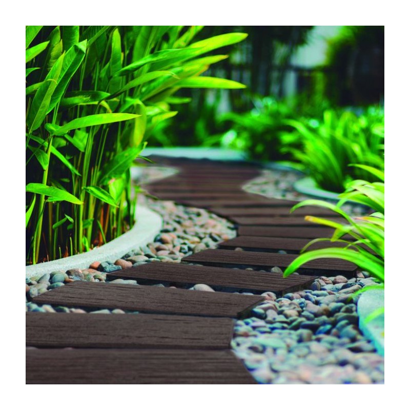 Loseta decorativa y antideslizante para crear caminos exteriores con un acabado efecto madera, fabricada en neumático reciclado.