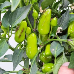 Guindilla picante cubana es una planta de porte erguido que produce frutos picantes de color amarillo. Es significativamente picante y tiene también un gran valor ornamental.