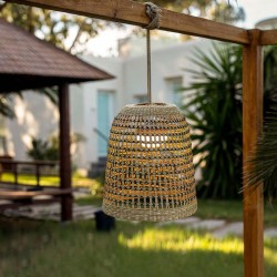 La pantalla está hecha a mano con fibras naturales e incorpora el cable hang negro de 150cm para que puedas regular su altura a tu gusto.
