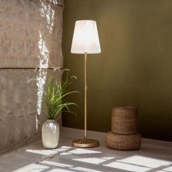Fabricada en polietileno blanco de alta resistencia, esta lámpara de pie cuenta con un diseño estilizado y una base robusta que garantiza estabilidad. Su sistema de iluminación con cable permite un uso continuado sin preocuparse por recargas, ideal para eventos o uso diario. Aporta una luz suave y envolvente que crea ambientes acogedores tanto de día como de noche.