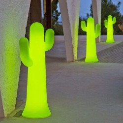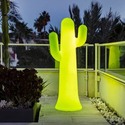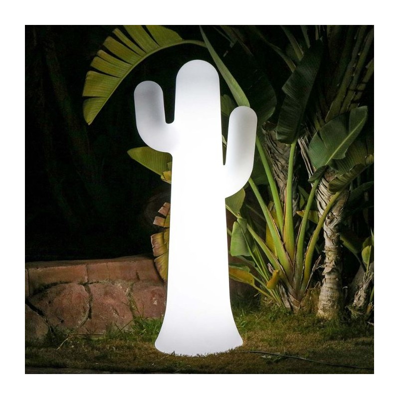 Fabricada en polietileno blanco de alta resistencia, Pancho es una lámpara con forma de cactus de líneas suaves y estilo contemporáneo. Funciona con cable, lo que permite una iluminación continua y sin interrupciones, ideal para jardines, terrazas, porches o espacios comerciales que quieran destacar. Aporta una luz decorativa y una estética desenfadada.