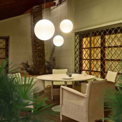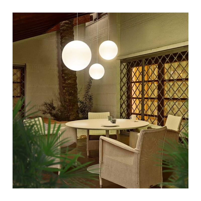 Iluminación colgante con diseño moderno y gran resistencia para exteriores.La lámpara Pianeta Hang de New Garden es una opción elegante y funcional para iluminar terrazas, porches o interiores con estilo. Su forma esférica y su acabado mate combinan estética minimalista y durabilidad.