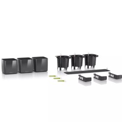 Fabricado con plástico resistente y acabado brillante Glossy, combina estética y funcionalidad. Cada módulo incluye depósito de agua con sistema de riego integrado que asegura que las plantas reciban la cantidad justa de agua, evitando el encharcamiento y facilitando el mantenimiento. El kit es compatible con plantas de interior de distintos tamaños y estilos, creando un efecto visual atractivo y saludable.