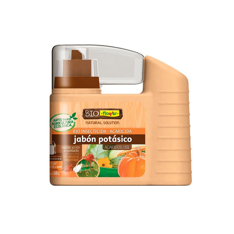 El jabón potásico es un insecticida acarizida de acción rápida por contacto. Se trata de un producto de origen natural, sin plazos de seguridad.