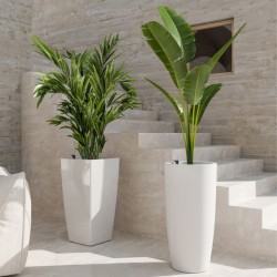 La Maceta Pisa Autoriego de Artevasi combina un diseño clásico y elegante con un sistema de autorriego que facilita el cuidado de las plantas. Fabricada en plástico resistente y ligero, permite un suministro constante de agua desde el depósito inferior, evitando tanto el exceso como la falta de riego.