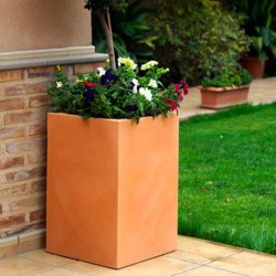 Macetero en resina de polietileno, con pared simple. Se aprovecha todo el interior de la pieza, de este modo se pueden colocar plantas grandes. Acabado lacado brillo con pintura para carrocerías. Producto apto para exterior e interior.