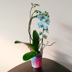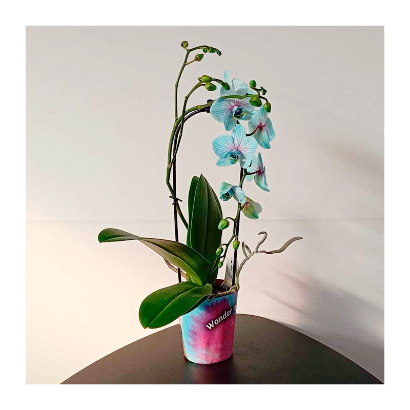 La orquídea wond of nature es de espectaculares flores azules con nervios rosa, tintadas en la parte inferior del tallo.