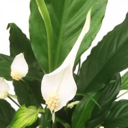 Atención : La flor del Spathiphyllum cambia de color a medida que avanza su floración y mutan de color a un tono verde, en función de su entorno.