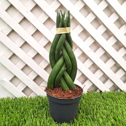 La Sansevieria cilíndrica trenzada, también conocida como "lengua de suegra trenzada", es una planta ornamental muy apreciada por su porte vertical y su diseño único con hojas en forma de cilindros, trenzadas de manera artística.