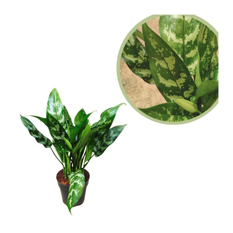 La Aglaonema 'Maria' es una planta tropical originaria del sudeste asiático, muy valorada por su follaje denso y atractivo. Sus hojas son de un verde oscuro con vetas plateadas, lo que la convierte en una opción elegante para interiores. Esta variedad es especialmente resistente y fácil de cuidar, perfecta tanto para principiantes como para quienes buscan una planta decorativa de bajo mantenimiento.
