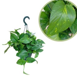 Características: Es una planta versátil, debido a sus muchas manifestaciones diferentes y tiene una asombrosa capacidad de purificación de aire. Las ramificaciones crecen en líneas, ya sea hacia arriba a lo largo de un tronco de árbol (o tutor) o hacia abajo. La planta esmuy reconocida como planta colgante. Las hojas brillantes de la hiedra del Diablo son en forma de corazón y tienen una impresión sorprendente: ya sea un patrón moteado o en forma de llamas. Existe una paleta de colores que van del verde oscuro al verde claro, plata, amarillo e incluso blanco.
