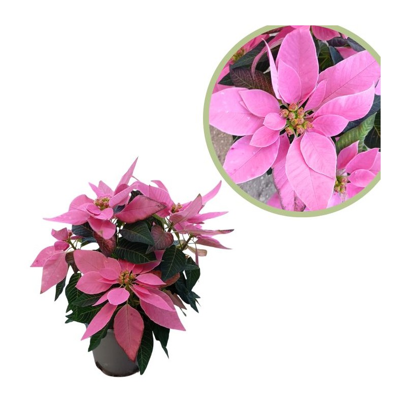 La variedad de poinsettia princesita es una variedad de hojas estrechas, se cultiva especialmente para la navidad, por la vistosidad de sus brácteas, que se confunden con flores.