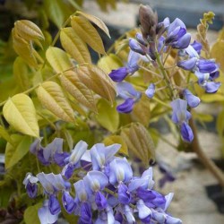 Wisteria venusta grande diva nathalie, una abundante floración primaveral, con un perfume encantador y unas flores aromáticas de color azul y blancas.