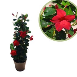 La dipladenia sanderi es de color rojo a rosado, aunque en la actualidad disponemos de mucho colores de flores, blancas, rosas, rosas anaranjadas, rojas, no soportar heladas, pero como planta anual plantada después del frio, es excepcional, con muchas flores toda la primavera, verano y otoño hasta que lleguen las bajas temperaturas.