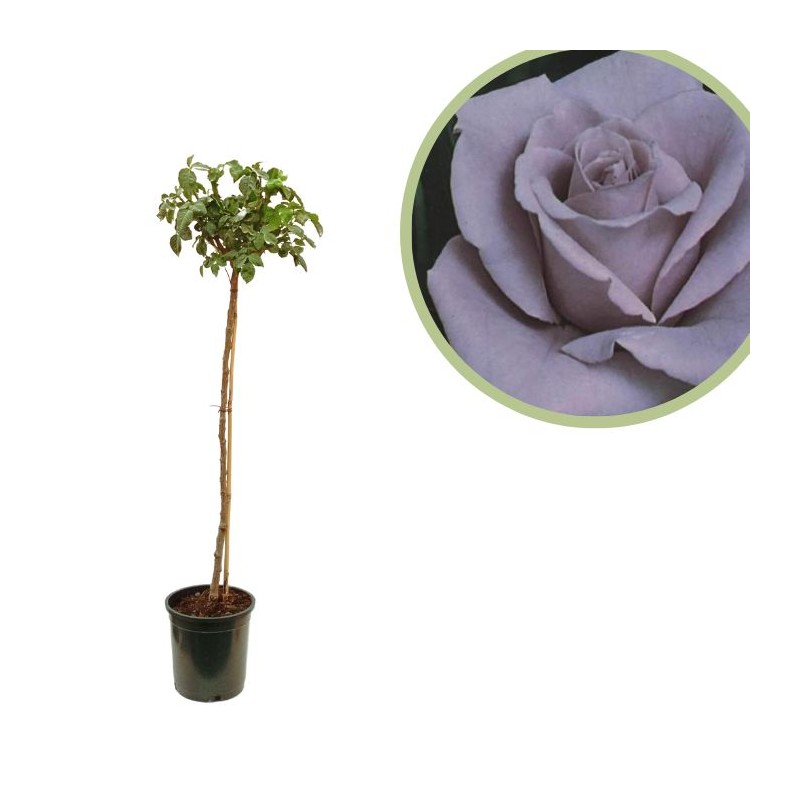 Nombre científico: Rosa 'Lady X'Nombre común: Rosal Lady XVariedad: Rosales ClásicosFamilia: RosaceaeTamaño planta adulta: Hasta 1.50 metrosFloración: El Rosal Lady X destaca por sus elegantes flores de color azul, una tonalidad poco común que aporta un toque distintivo a cualquier jardín. Para una floración continua y vibrante, es esencial proporcionar agua y abono regular durante toda la estación vegetal.Iluminación: Pleno sol, ideal con al menos 6 horas de luz solar directa al día para fomentar una floración abundante y un crecimiento saludable.Temperatura: Soporta heladas, lo que lo hace adecuado para una variedad de climas.Trasplante: Puede ser trasplantado desde mediados de octubre hasta finales de abril, evitando las épocas de heladas. Elige un lugar con buen drenaje y suficiente exposición solar para asegurar un buen desarrollo.Riego: Es fundamental durante los dos primeros años y en períodos secos para promover el desarrollo saludable del sistema radicular.Abonado: Utiliza abonos minerales y orgánicos al final del verano y después de cada floración para mantener la vitalidad y promover una floración continua y rica.Podas: Realiza la poda a mediados de invierno, eliminando 2/3 de la longitud del tallo y dejando 5 o 6 yemas. Si el tallo está seco o débil, poda por la base. Para rosales trepadores, elimina ramas secas o viejas y acorta los tallos. Los rosales paisajísticos de porte alto se podan a media altura, mientras que los cubre-suelos se podan cada 5 o 6 años a 20 cm del suelo para renovar la vegetación.Plagas y Enfermedades: Realiza tratamientos preventivos contra el óxido y el mildiu. Monitorea regularmente para controlar plagas como ácaros y pulgones.Usos en Jardinería: Ideal para jardines de todos los tamaños, el Rosal Lady X azul añade un toque único y elegante. Perfecto para bordes, setos ornamentales y como punto focal, su raro color azul en forma de copa ofrece un estilo distintivo y sofisticado a cualquier diseño paisajístico.
