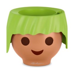 Ideal para plantas pequeñas o suculentas, es una excelente opción para decorar escritorios, estanterías o mesas de interior con un guiño nostálgico y moderno. Ademas, los ojos del playmobil muestran cuánta agua hay en la maceta, cuando el depósito de agua está lleno, los ojos se ponen azules.