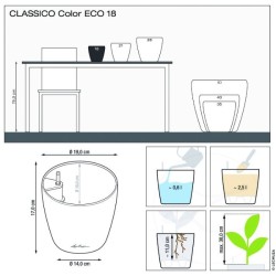 Maceta CLASSICO Color ECO de Lechuza, un diseño atemporal fabricado con plástico 100% reciclado y sistema de riego automático.