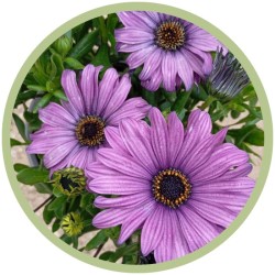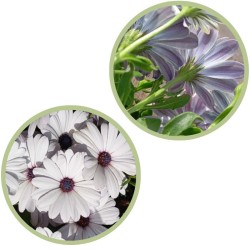 Flores: Gran variedad de colores, hay variedades que son de un color por arriba y de otro distinto por el envés. Las flores de las dimorphotecas se abren con el sol y al llegar el atardecer se cierran.